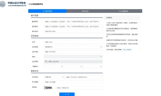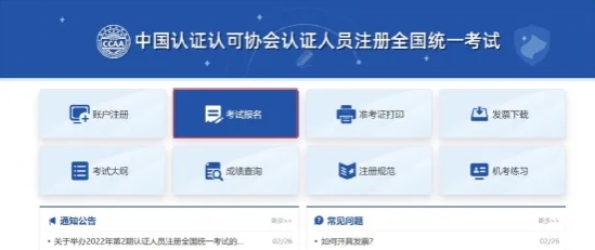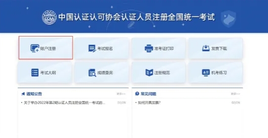 (1)登錄中國認證認可協會認證人員注冊全國統一考試報名網站(網址:https://kaoshi.ccaa.org.cn/),點擊“賬戶注冊”模塊。