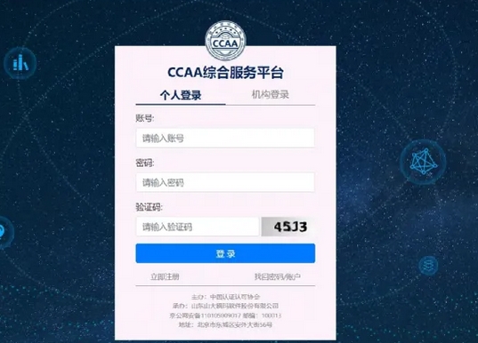 (2)進入登錄頁面后,選擇“個人登錄”模塊,輸入賬號、密碼、圖形驗證