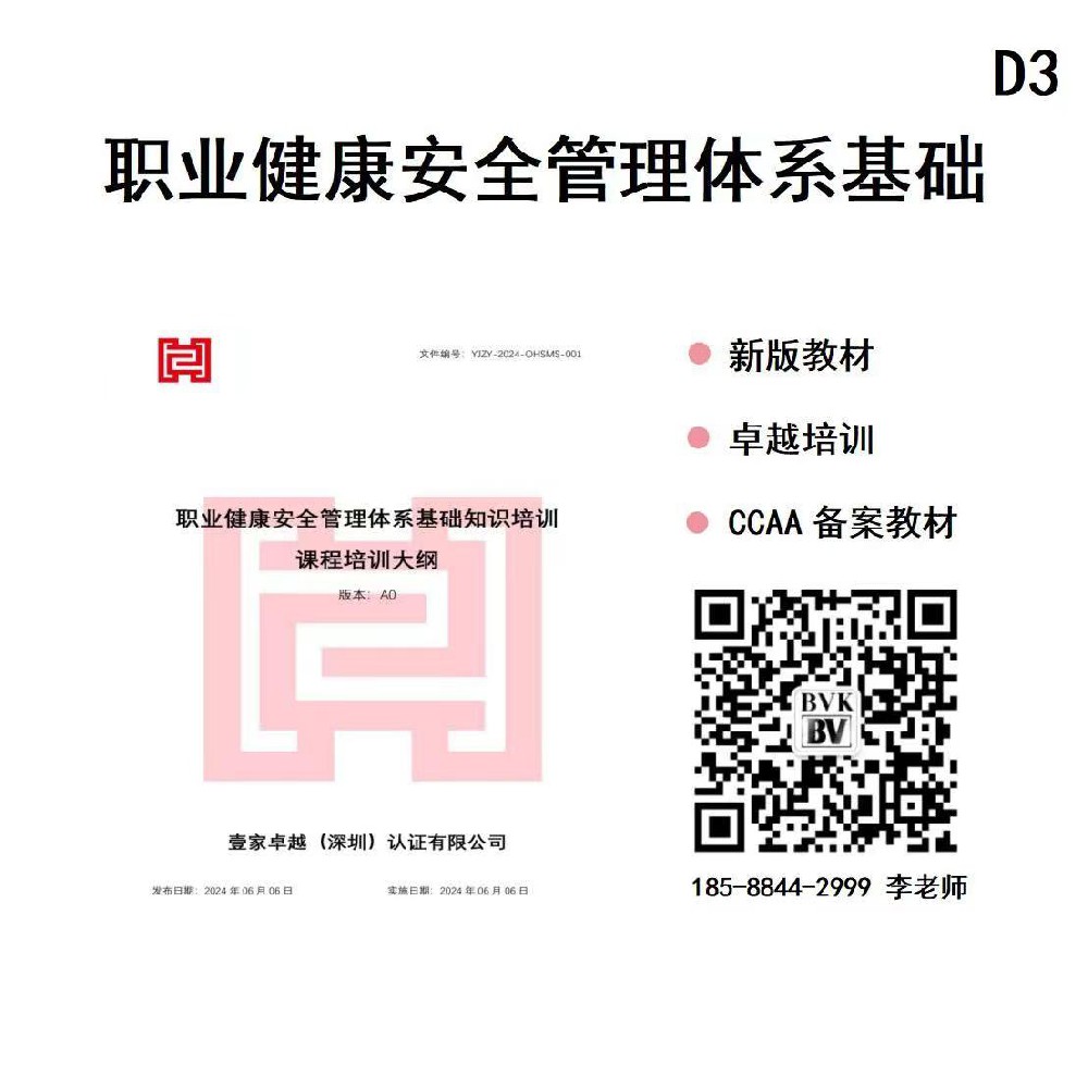 職業健康安全管理體系基礎考試資料 CCAA注冊審核員考試輔導資料 CCAA認證人員基礎知識系列教材資料